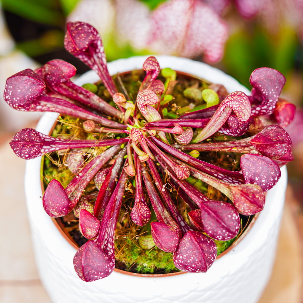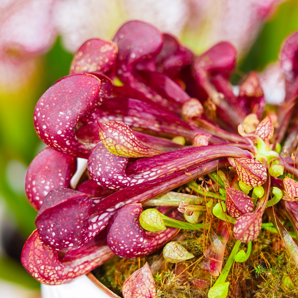 Sarracenia 'Psittacina' to roślina, która istotnie różni się od innych gatunków. Jej kielichy praktycznie płożą się po ziemi, jednocześnie mając wyjątkowy kształt.